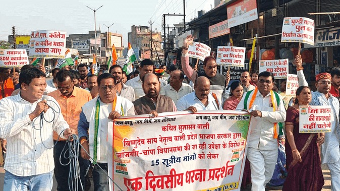 जांजगीर-चांपा में कांग्रेस का धरना प्रदर्शन, 15 सूत्रीय मांगों को लेकर सौंपा ज्ञापन