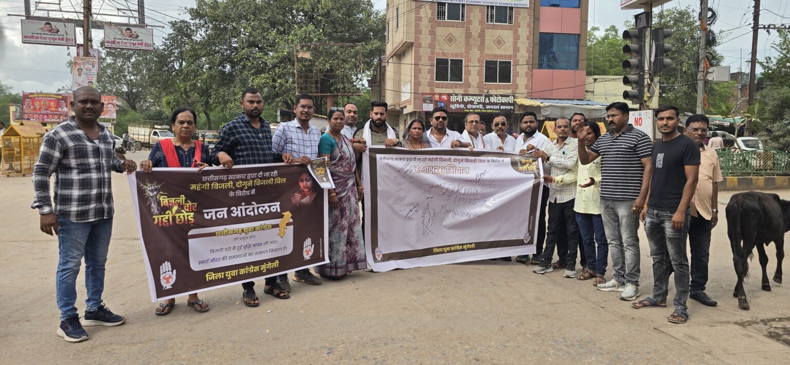 मुंगेली में युवा कांग्रेस का बिजली बिल विरोध अभियान, जनता ने जताया गहरा असंतोष