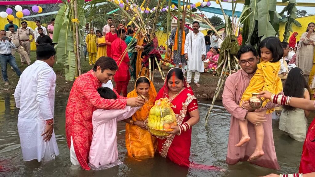 25 अक्टूबर से प्रारंभ हुए इस महापर्व की शुरुआत नहाय-खाय से हुई, जिसमें व्रती महिलाओं ने पवित्र स्नान कर सात्विक भोजन ग्रहण किया। इसके बाद खरना के दिन गुड़ की खीर और रोटी का प्रसाद बनाकर पूजा-अर्चना की गई। 27 अक्टूबर को संध्या अर्घ्य के अवसर पर श्रद्धालु महिलाओं ने सोलह श्रृंगार कर अस्ताचलगामी सूर्य को अर्घ्य दिया। घाटों पर दीपों की रोशनी, लोकगीत और भक्ति भाव से वातावरण पूर्णतः आध्यात्मिक हो उठा। 28 अक्टूबर की सुबह उषा अर्घ्य के साथ व्रती महिलाएं उगते सूर्य को अर्घ्य अर्पित कर अपने व्रत का समापन करेंगी।