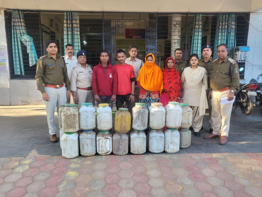 सुदनपारा वार्ड नंबर 1 में कोटा पुलिस ने पकड़ा भारी मात्रा में अवैध महुआ शराब का जखीरा दो महिला दो पुरुष सहित 4 आरोपी गिरफ्तार करीब 525 लीटर कच्ची शराब जप्त