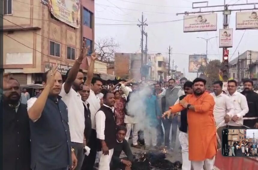 शंकराचार्य स्वामी अविमुक्तेश्वरनंद के अपमान के विरोध में कांग्रेस का उग्र प्रदर्शन,नगर में कांग्रेसियों ने किया प्रधानमंत्री नरेंद्र मोदी का पुतला दहन