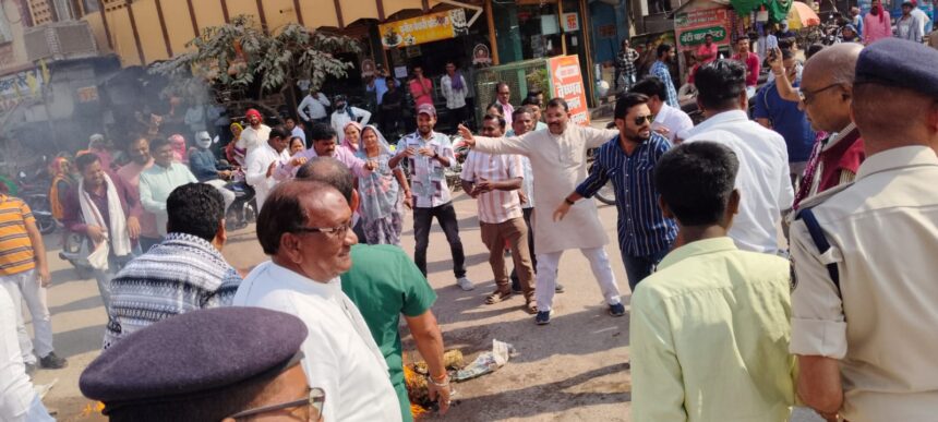 ईडी की तानाशाहीपूर्ण कार्यवाही को लेकर जिला /शहर कांग्रेस कमेटी ने किया पुतला दहन