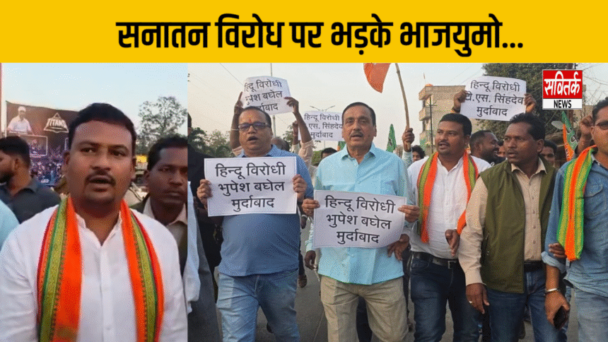 बागेश्वर बाबा पर टिप्पणी से भाजपाई हुए नाराज : भाजयुमो ने भूपेश बघेल और टीएस सिंहदेव का पुतला दहन कर विरोध प्रदर्शन किया