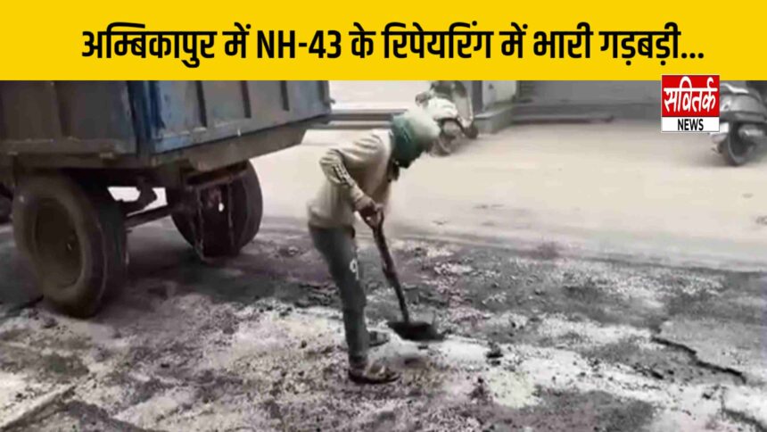 अम्बिकापुर में NH-43 के रिपेयरिंग में भारी गड़बड़ी….